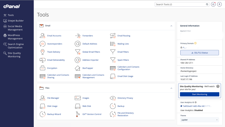 cPanel’s file manager lets you easily handle website data and upload and download files.